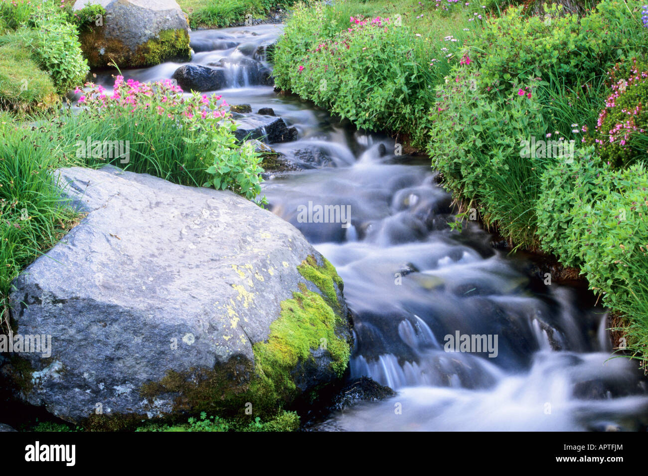 Wildflowers And Stream Summerland Meadow Mount Rainier National Park Washington Stock Photo Alamy